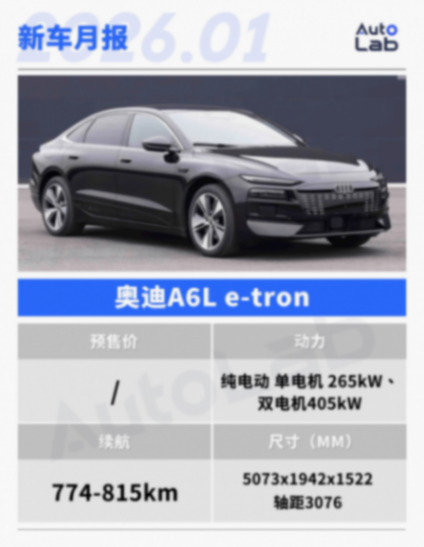 除了全新的Q5L,預熱已久的奧迪A6L e-tron也有望在1月迎來上市。