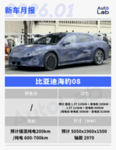 海豹08定位旗艦轎車,走的是低趴溜背的轎跑路線,預計尺寸可達5米級,從預告圖看它的氣場和定位都明顯高于現有產品。