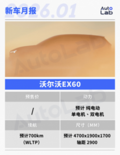 根據預告,EX60的WLTP工況續航可超過700km,預計CLTC工況下續航有望達到800-900km。