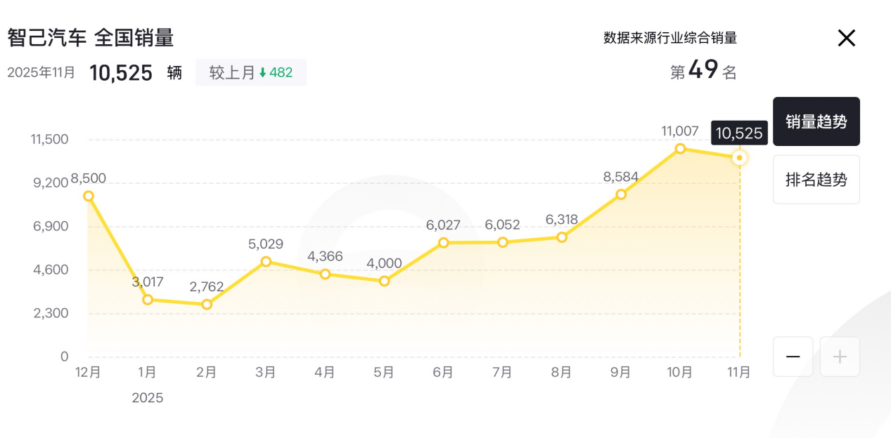 從平臺了解到,智己汽車在整個2025年銷量感覺用“慘淡”二字都不足以形容,從1月到9月,都穩定在五六千輛徘徊,低于等于4000輛的甚至還有3個月。