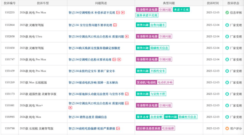 營銷的畫風可以調整,但落到產品上的問題,則會直接動搖品牌的根基。智己的“銷量擔當”LS6,曾因質量問題遭遇集中投訴。