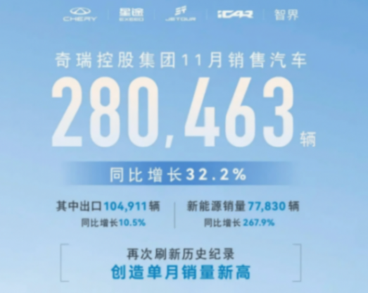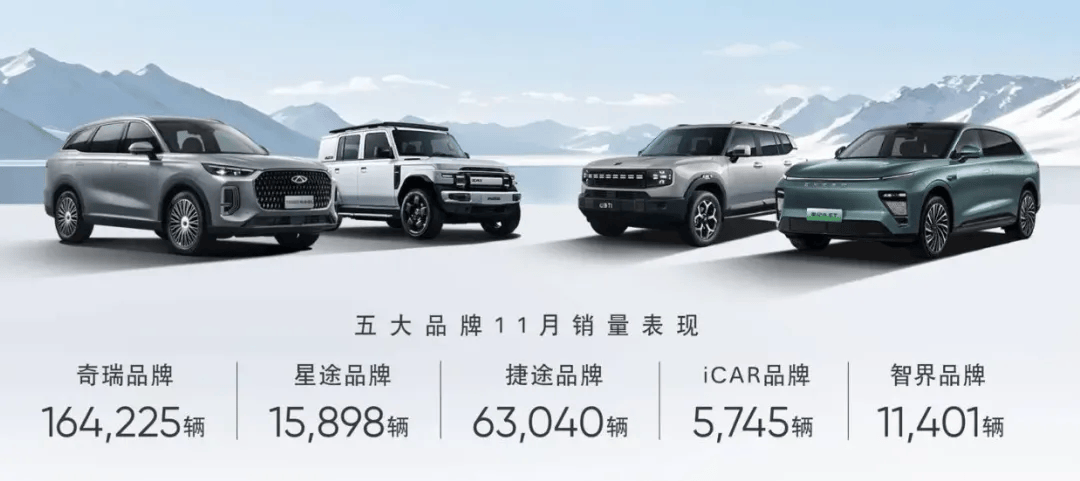 2025年1-11月,奇瑞集團累計銷量逾256萬輛,同比增長11.1%,其中新能源汽車累計銷量達81.47萬輛,同比上漲69.4%。