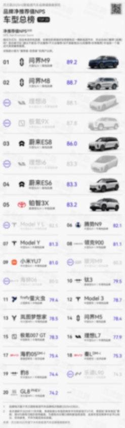 近日,杰蘭路發布《2025年度下半年新能源汽車品牌健康度研究》報告。報告顯示,問界榮獲品牌NPS(凈推薦值)第一、品牌發展信心指數第一、30萬元以上品牌百人青睞指數第一;其中全景智慧旗艦SUV問界M9以89.2的分數位列NPS(凈推薦值)車型總榜第一,這是問界M9繼2024年全年、2025上半年后第四次摘冠,也成為新能源SUV車型中第一個、唯一一個連續四次獲得NPS第一的車型。這一成績不僅印證了用戶對其全維實力的深度認可,更展現了問界M9在50萬級豪華SUV市場的強大號召力。