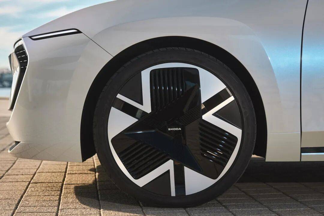 外觀方面,Vison O概念車沿用了旅行車經(jīng)典的實用車身造型,但幾乎所有其他設(shè)計都與如今的燃油車截然不同。新車外觀采用銳利的線條設(shè)計,更注重空氣動力學設(shè)計。車頭保留了斯柯達品牌特點的格柵設(shè)計,官方稱之為“科技環(huán)面罩”,具有主動格柵功能。傾斜的車頂配有分體式車頂擾流板,一直延伸至狹窄的尾燈,車輪的形狀完全經(jīng)過空氣動力學優(yōu)化,以提高動態(tài)性能。可伸縮的門把手也有助于改善氣流。此外,發(fā)動機蓋有兩個通風口,可以減少空氣動力學阻力,并將雨水從擋風玻璃中轉(zhuǎn)移。