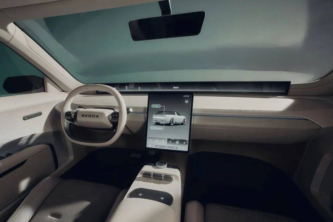 汽車前部的斯柯達網(wǎng)絡(luò)燈提供了全新的外觀。滑動主大燈是歡迎和告別動畫的一部分,發(fā)動機蓋上亮起的斯柯達標志。動畫指示器在主大燈、擋泥板和后視鏡中實現(xiàn),當汽車處于自動駕駛模式時,也可以作為信號燈。當車輛進入自動駕駛模式時,照明系統(tǒng)會轉(zhuǎn)變?yōu)楠毺氐哪J剑蚱渌缆肥褂谜甙l(fā)出信號。此外,前面的Tech-loop面罩以特殊的順序和配色方案亮起,以表明目前已開啟駕駛輔助系統(tǒng)。