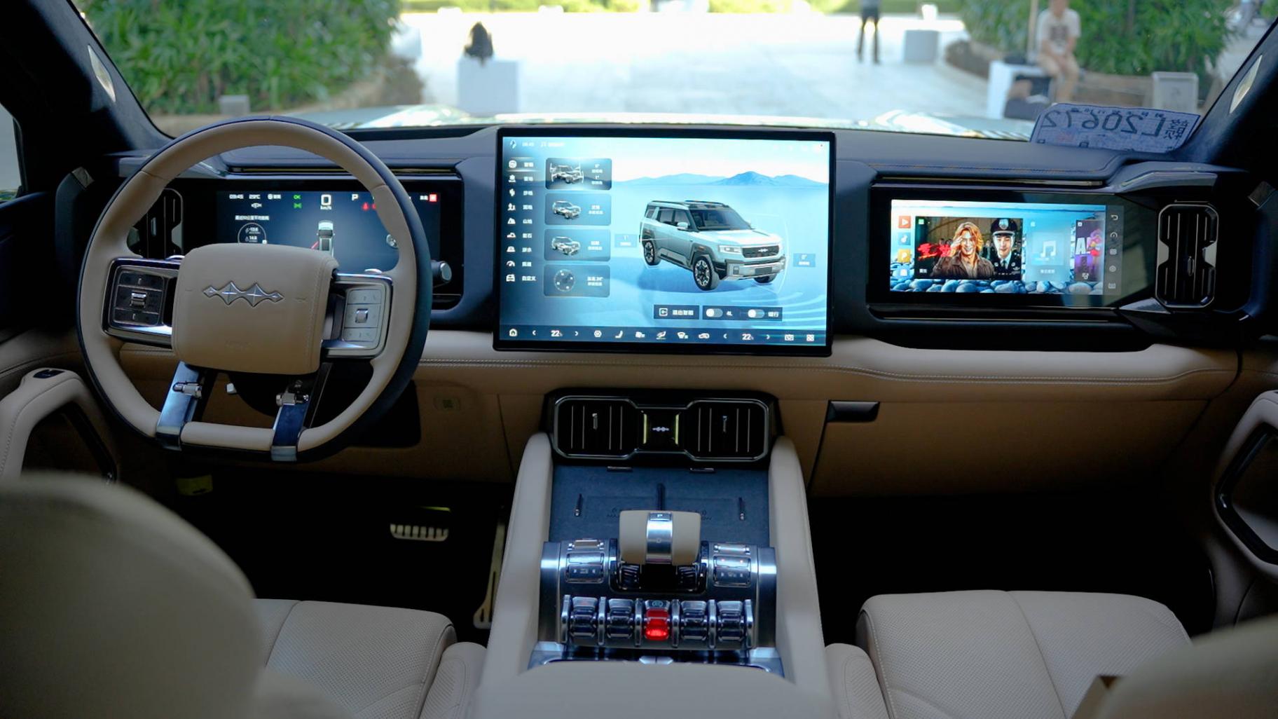 那它的優勢,當然就是大方盒的外形,非常個性和有回頭率,而且也顯得車主很man,我知道多數男士就喜歡這種感覺;第二,和其它比亞迪家高價位車一樣,首先堆性能,2.0T發動機+雙電機,總功率500kW,扭矩760牛·米,零百加速僅4.8秒;并且它的“方盒子”外形不是樣子貨,獨立大梁,三把差速鎖,特別是云輦P液壓懸掛,調節行程和軟硬度超過空懸,國產品牌獨此一家。