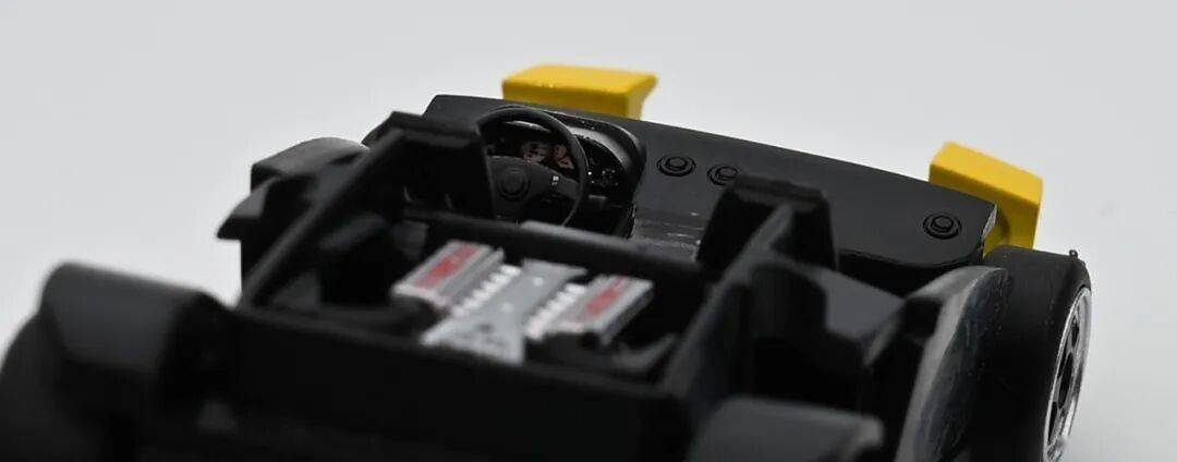 可開的翻燈是一大亮點,而且還原度很高。前杠前方轉向燈和霧燈燈組質感極佳,但就是側面轉向燈的那一點,和其他燈組的質感形成極大差距。MT這款模型還有2處進氣口沒涂黑,一是前翼子板上的進氣口,二是側窗后方第一個進氣口。