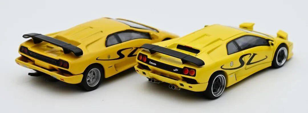 作為牛牛粉絲的我,當然有收藏來自京商遠古時代的同款64比例Diablo SV啦。在工業日漸發達的當代,兩臺來自不同年代的車放一起一對比,做工差別自自然然是鴻溝般的。當然,作為后輩,MT這款SV也比前輩貴不少。