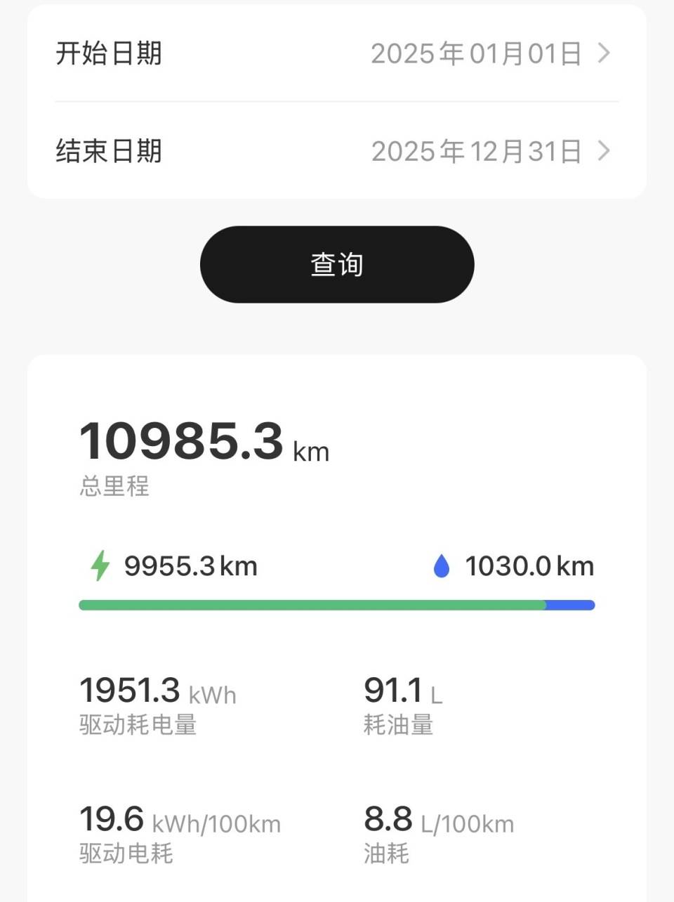 2025年已經(jīng)過(guò)去了,在過(guò)去這一年,小編駕駛理想L8一共行駛了10985公里,由于前年小編剛剛升級(jí)成為了一名奶爸,所以去年一年,小編開車跑長(zhǎng)途的情況相對(duì)會(huì)少一些,大多數(shù)時(shí)候都是市區(qū)行駛,跑過(guò)兩三回長(zhǎng)途,大多數(shù)時(shí)候,長(zhǎng)途出行都選擇了飛機(jī)或者高鐵,而不是駕車。所以大家可以看到,這輛理想L8在去年一年,純電行駛里程接近1萬(wàn)公里,燒油行駛的距離只有1000公里多一點(diǎn),不是說(shuō)長(zhǎng)途行駛只是跑了1000公里,而是在有些情況下,在跑長(zhǎng)途的時(shí)候,也會(huì)進(jìn)行純電行駛。