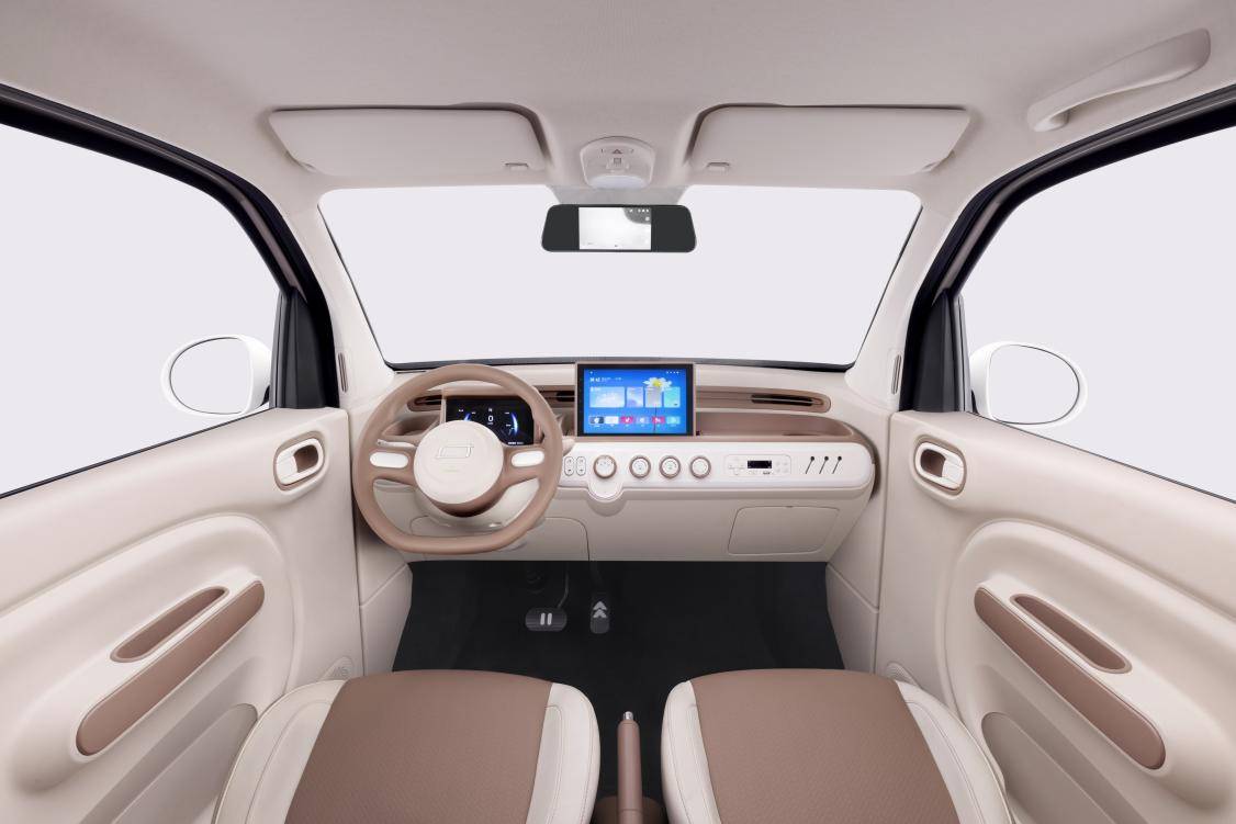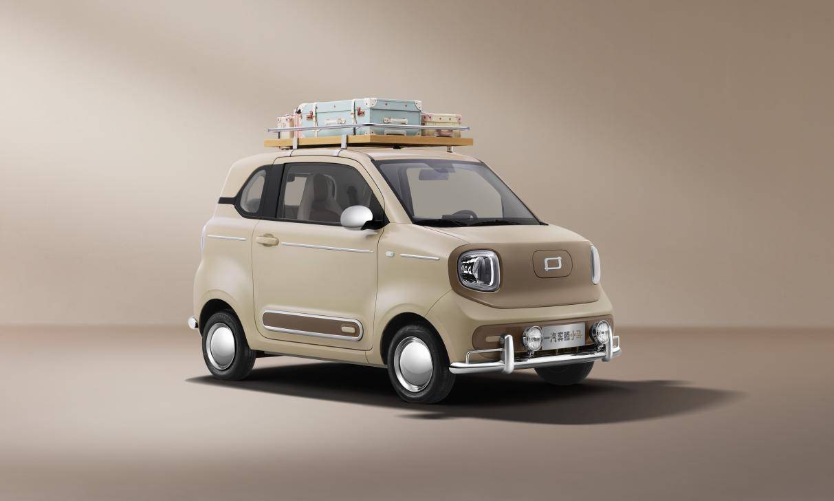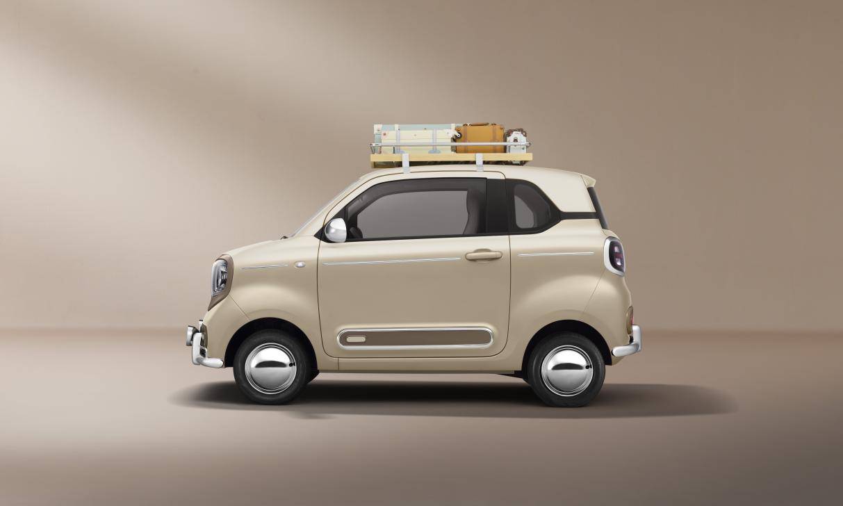 最明顯的部分就是在外觀上,除了奶咖雙拼色以外,非常顯眼的細節就是鍍鉻的前后杠,也是在向鍍鉻時代的老車致敬。而現在則代表了復古時尚的風格,再搭配圓潤小巧的燈組和溫暖的奶咖雙拼色車身,讓整車看起來更加的精致小巧。同時,鍍鉻的裝飾也延伸至輪轂和尾燈框上,讓整車設計協調。那另外一點和同級別車型有明顯不同的就是車頂上的木質行李架,在這個級別的車型上一點都不多見,再加上它222km的純電續航,日常城郊的短途出行,包括節假日露營,車頂的行李架上都可以打包一些露營裝備,也代表了一種時尚的自由生活方式。