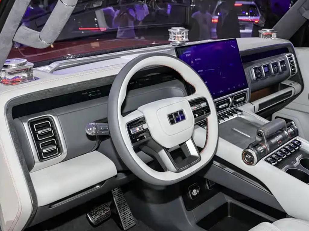 內飾上,這臺銀河戰艦同樣也是方正硬朗風,新車配備了全液晶儀表盤、大尺寸中控屏,同時在副駕、A柱等處還加入了扶手,以強化其越野屬性。