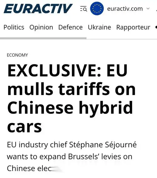 歐盟計劃對中國混動汽車加征關稅,其直接理由指向所謂的“政府補貼”。歐盟工業專員辦公室表示,認為中國混動汽車與電動汽車類似,在制造過程中受到中國政府的補貼支持。