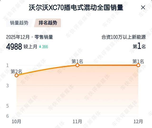 也正是因為產品力出色再加上沃爾沃的品牌力加持,讓沃爾沃XC70上市后的首月,也就是2025年10月就進入到國內售價30萬以上合資新能源車銷量榜的第2名。11月和12月,沃爾沃XC70已經連續兩個月都超越別克GL8插混版,穩居國內30萬以上合資新能源車銷量榜第1名。