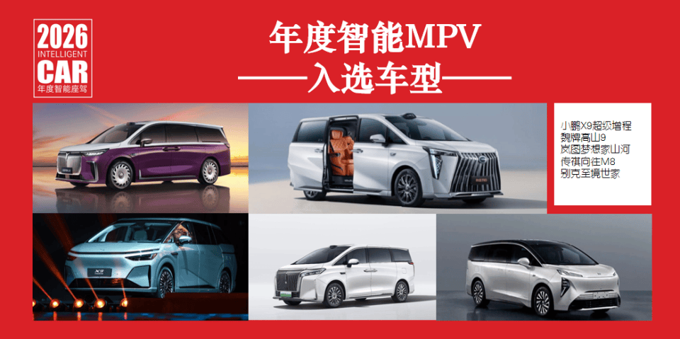 年度智能MPV有四款車型入圍:小鵬X9超級增程、魏牌高山9、嵐圖夢想家山河、傳祺向往M8、別克至境世家。這四款車型既創造了可觀的銷量,也在技術和硬件配置上實現了突破。他們分別代表著小鵬基于VLA的純視覺智駕路線,華為乾崑雷視融合方向、Momenta和元戎的VLA大模型。