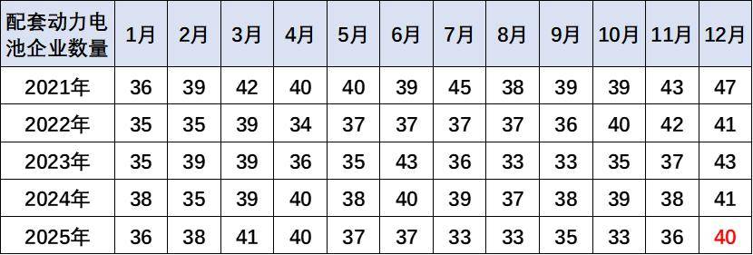 過去幾年,電池市場的競爭格局并沒有發生明顯的變化。2025年12月配套電池企業是達到40家的正常低位。由于動力電池市場的技術進步相對比較緩慢,而規模增長特征相對明顯,因此,電池企業獲得了較強的生產和裝車數量增長的特征。