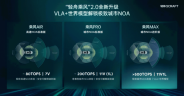 從產品層面來看,輕舟智航通過乘風AIR、PRO、MAX三級產品矩陣,能夠靈活滿足不同價位車型的需求。