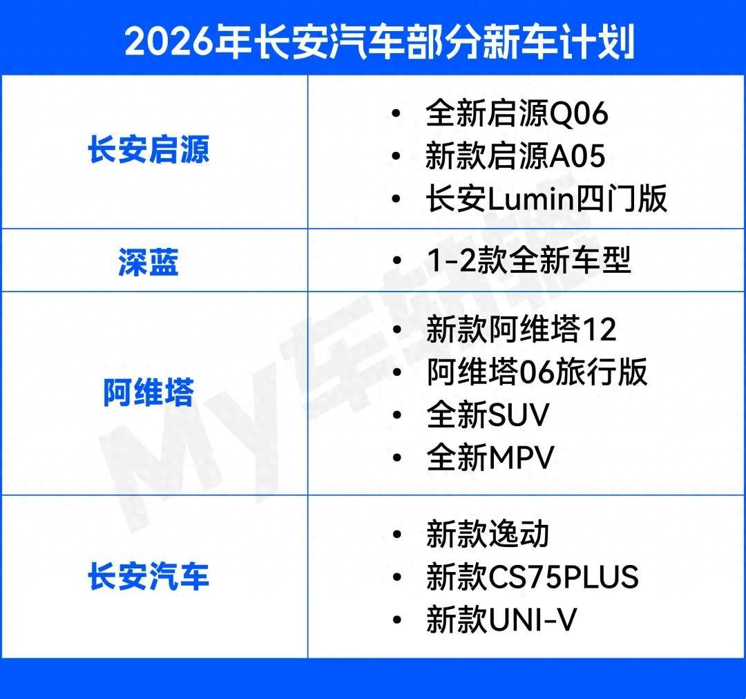 關于這個問題,長安汽車給出的答案是:"他強由他強,清風拂山崗;他橫任他橫,明月照大江。"畢竟剛到2026年,長安汽車就迫不及待地公布旗下深藍、阿維塔、啟源、長安等各品牌的新車計劃,秀肌肉的意圖很明顯。