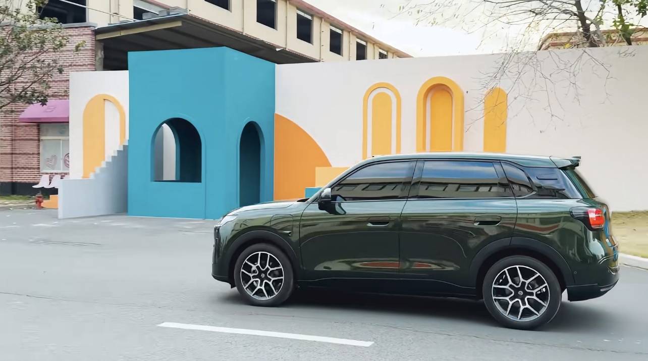 車身尺寸長寬高分別為4270/1810/1635mm,軸距2605mm,不及比亞迪元UP,但要大過星愿。車身側面采用方正飽滿的SUV風格,而懸浮式車頂、半隱藏式門把手以及18英寸雙五幅式運動輪轂的加持,又帶來了時尚前衛屬性,并提供橡果棕、海苔綠、莓莓藍、苔原灰、星河銀、摩根粉共六種配色可選。另一亮點當屬尾部的“哈哈”尾燈,點亮后呈現“笑臉”,繼續強調個性化。