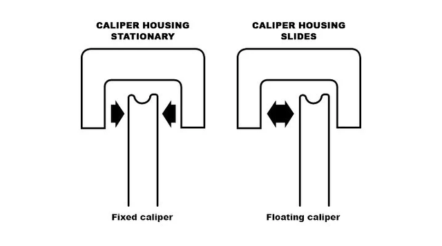 上圖的左邊是固定式卡鉗,雙向實行制動,右邊是浮動式卡鉗,有運動銷一側可以運動,單側活塞施壓。