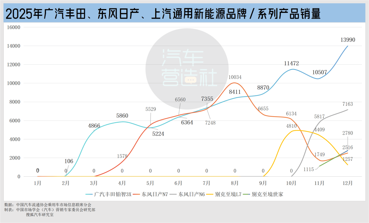 銷量增長來自新能源子品牌/序列共5款合資2.0產(chǎn)品的助力,別克至境、廣汽豐田鉑智以及東風(fēng)日產(chǎn)N序列分別貢獻(xiàn)1.4萬輛、8.4萬輛和6.1萬輛。