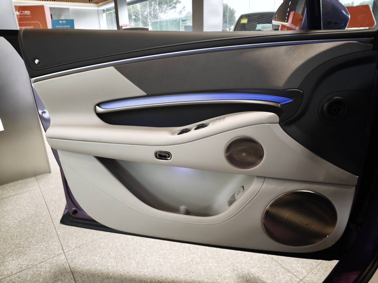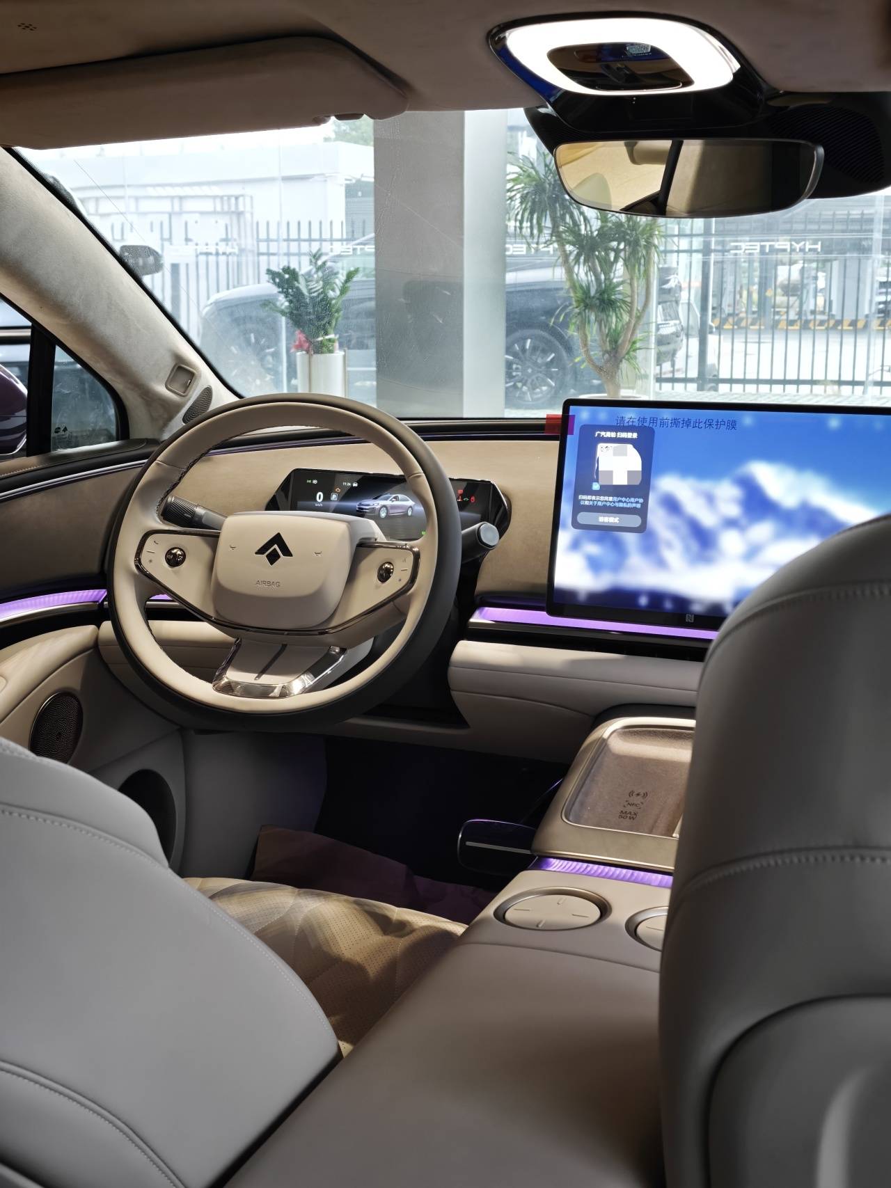 打開(kāi)主駕車(chē)門(mén),這個(gè)感受更會(huì)撲面而來(lái)。淺內(nèi)飾極其漂亮、大氣,細(xì)節(jié)設(shè)計(jì)不繁雜也不浮夸,又有足夠的豪華感,特別是氛圍燈和門(mén)板的設(shè)計(jì),非常新穎又不喧賓奪主,配合上包裹到門(mén)板最底端的皮料、有菱格紋又柔軟舒適的座椅,一關(guān)上車(chē)門(mén),就像被柔軟又高級(jí)的氛圍環(huán)抱一樣,在大降溫的日子里讓人感受到了被擁抱的溫暖。這臺(tái)車(chē)的皮料非常舒服且軟糯,是的,達(dá)到絕對(duì)可以用“軟糯”來(lái)形容的程度,推薦大家都去試試。