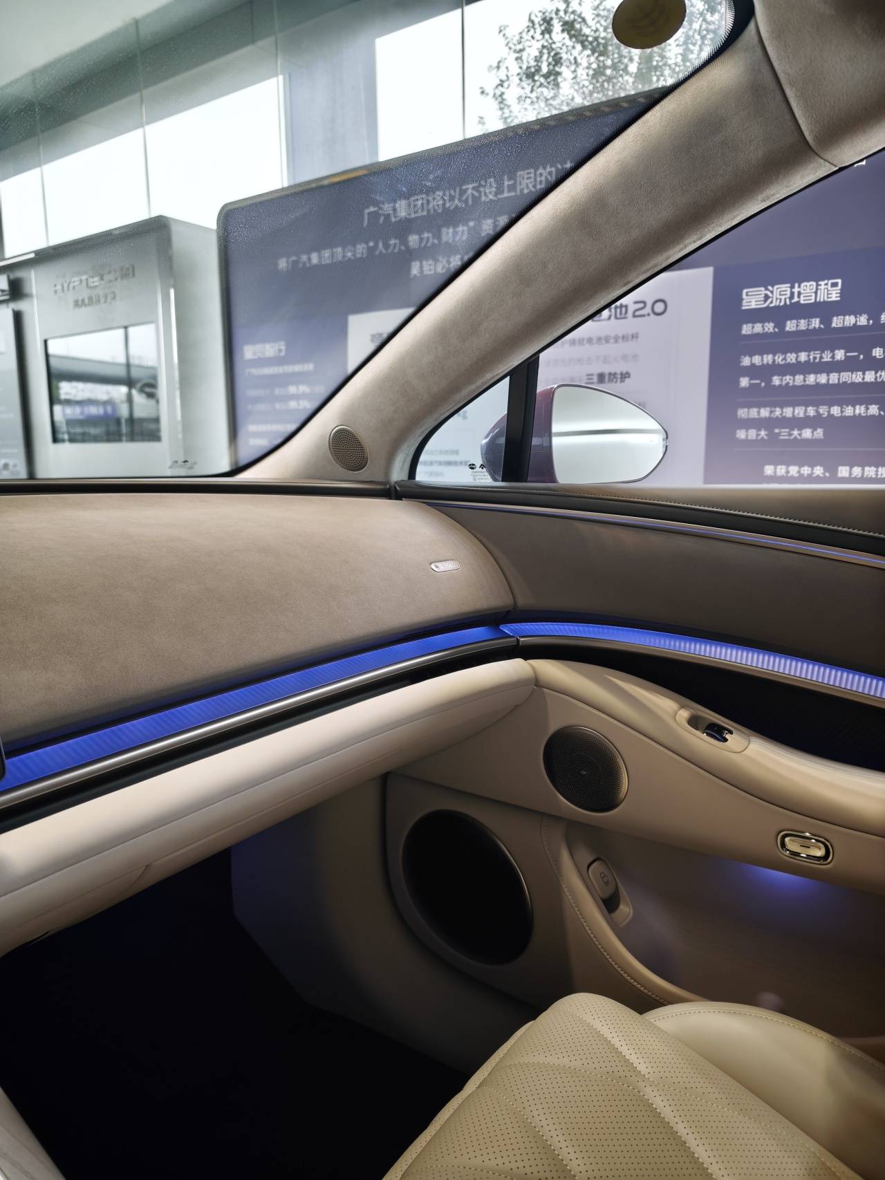 車(chē)頂天幕遮陽(yáng)簾也很有新意。因?yàn)橐?ldquo;偷”頭部空間,又不能讓乘客被太陽(yáng)曬得難受(畢竟這是廣東車(chē)企,南方的太陽(yáng)大家懂的),所以廣汽選擇了著名供應(yīng)商偉巴斯特的方案,在玻璃夾層里放上電動(dòng)遮陽(yáng)簾。這是我第一次見(jiàn)到這樣的設(shè)計(jì),太有新意了,看起來(lái)也很高級(jí),還做到了頭部空間和乘坐舒適性兼得。