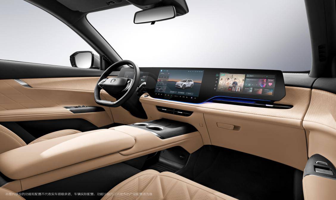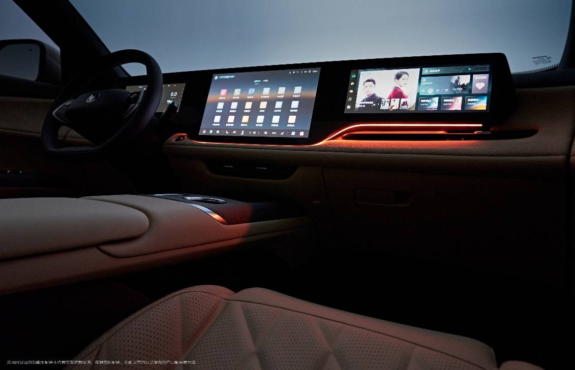 打開車門,最吸睛的無疑是橫貫眼前的37英寸一體式三聯(lián)屏(10.25英寸儀表屏、14.6英寸中控屏、12.3英寸副駕屏)。但這塊巨屏的價(jià)值,不在于尺寸,而在于它背后流淌的“智慧”。