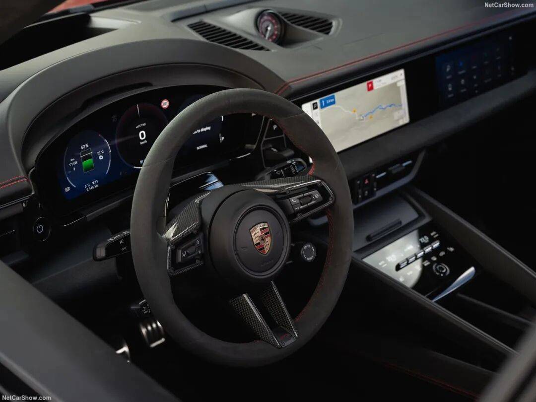 12.6英寸全數字懸浮式曲面儀表位于駕駛者直視視野內,一如保時捷傳統,該屏幕為儀表臺最高點。中控屏為10.9英寸全高清高分辨率觸控屏。選裝的副駕屏尺寸同樣為10.9英寸,副駕可調節娛樂、導航設置,瀏覽媒體應用并播放視頻內容,行駛中也可正常使用,且通過特殊技術確保駕駛員無法看到該屏幕內容。