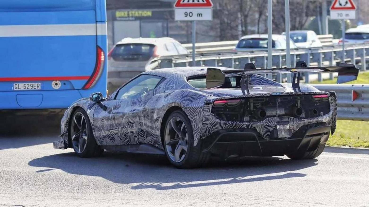 所以,所有跡象表明這款偽裝車是一款296 Challenge Stradale車型,比去年推出的Speciale版本更加專注于高性能。如果真是這樣,那新車動力將是亮點。按照法拉利遵循賽車模式調(diào)校,這款符合上路標準的車型可能會舍棄混動系統(tǒng),轉(zhuǎn)而使用純粹的V6引擎,以減輕重量。