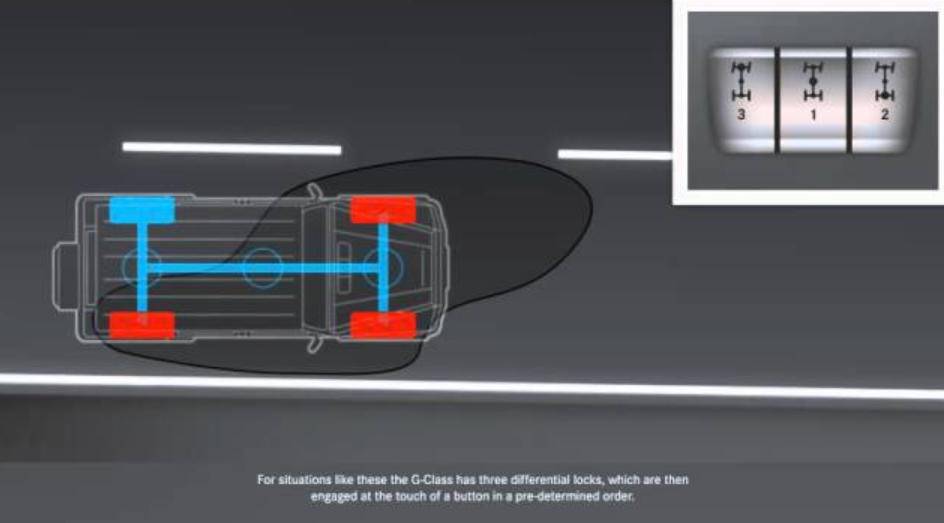 “鎖”主要分兩種,第一種是真正的物理鎖,多為后橋差速鎖,通過電控或氣動裝置,將兩個后輪半軸剛性連接,實現100%或接近100%的鎖止率,脫困能力強。