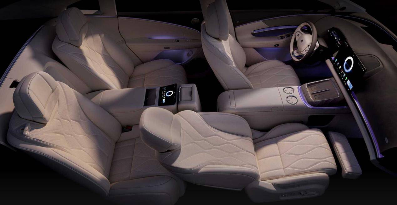 但內(nèi)部的橫向、縱向空間是完全合格的,且座椅設(shè)計(jì)十分講究,菱格紋圖案、寬大厚實(shí)的椅面、柔軟的頸枕、老派的配色,后排支持大角度的靠背調(diào)節(jié),高配版副駕還有零重力座椅,算是把自身尺寸優(yōu)勢(shì)充分發(fā)揮到乘坐體驗(yàn)上了。