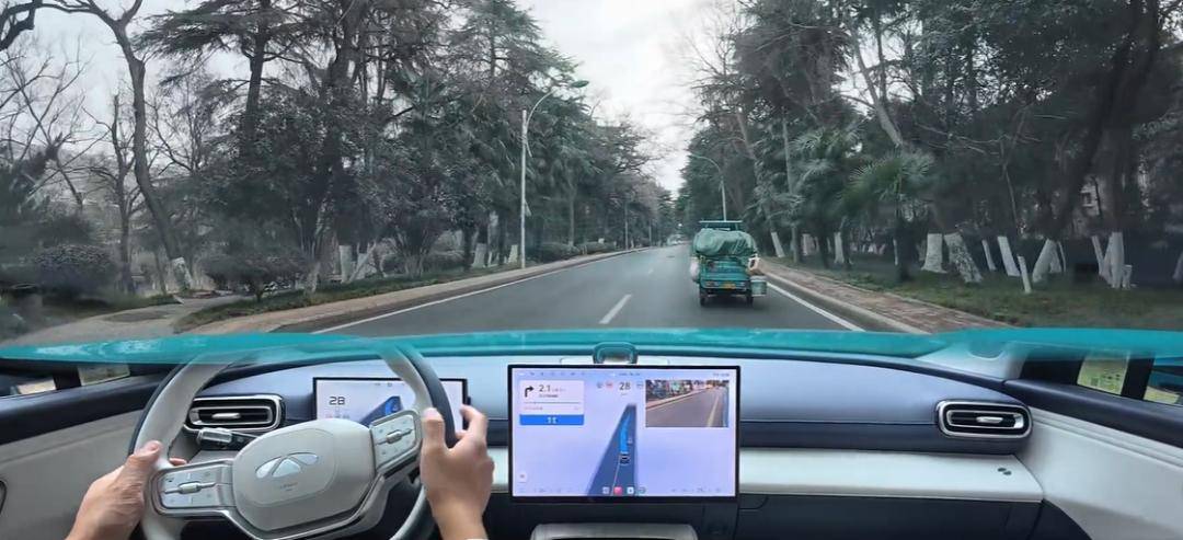在高速上的智駕表現(xiàn)就不用多說(shuō)了,基本全程只要你手扶在方向盤(pán)上,他就能高效、安全地到達(dá)目的地,在城區(qū)路段的表現(xiàn)也很靈活,在能通過(guò)的路口,通過(guò)速度能做到果斷不拖沓,在遇到雙向單車(chē)道有慢速車(chē)或臨停車(chē)時(shí),能主動(dòng)規(guī)劃路線繞行,不用頻繁手動(dòng)干預(yù),遇到突然竄出來(lái)的行人或電動(dòng)自行車(chē)也,也能提前剎停或者變道,整體表現(xiàn)還是比較老司機(jī)的。