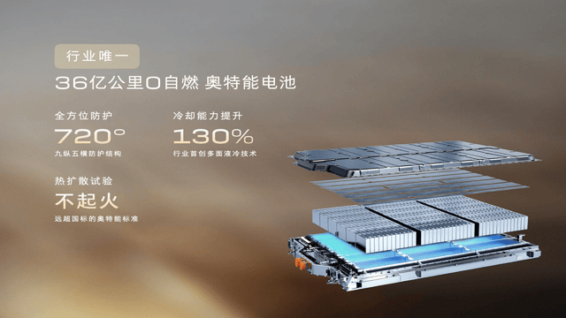 至境世家純電版圍繞電池與車身兩個維度構建安全體系。電池方面,奧特能電池已實現36億公里行駛零自燃,電池包采用9縱5橫防護結構與多面液冷技術,完成超4萬小時系統驗證,極端工況下可做到熱失控不起火、不擴散。電磁輻射方面,車內全頻段輻射值控制在國標限值的5%以內,電池臨近區域輻射低于日常手機。