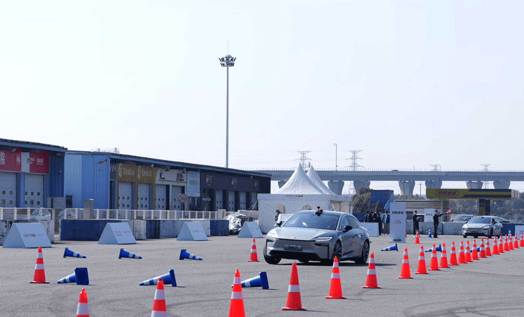 場地試駕的第一個科目是繞樁。其實過去兩三年,但凡我參加中國品牌的試駕活動,只要該車型配備的是前雙叉臂、后多連桿懸掛,幾乎都會安排繞樁科目,目的就是讓媒體體驗車輛的抗側傾和穩定性,僅此而已。