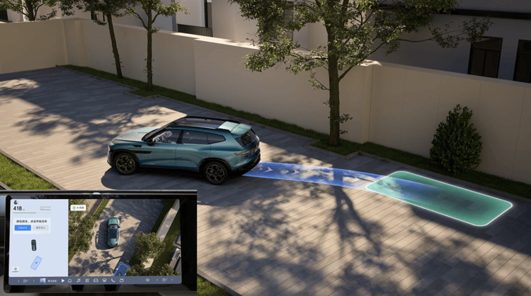泊車場景的解決方案同樣全面且貼心。除了泊入泊出功能,車輛還支持極具創新的“指尖泊車(自定義泊車)”,用戶僅需在中控屏上劃過預期泊車區域,系統即可自動生成車位并完成泊入;在面對狹窄死胡同時,“循跡倒車”功能可自動按原路徑倒回最多100米,可輕松脫困。