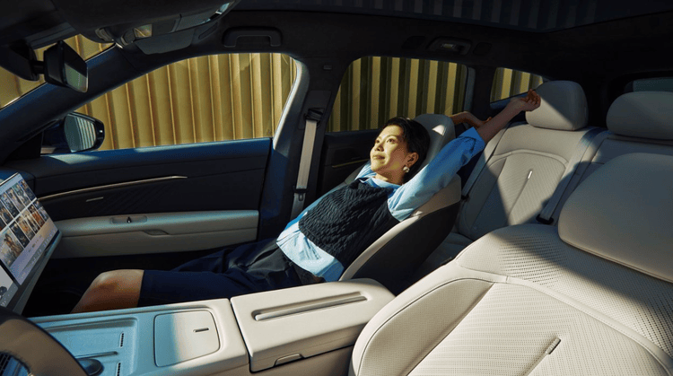 車輛為副駕打造了專屬的“舒享空間”:配備電動腿托的座椅支持12向電動調節,并集成了氣動腰托、通風、加熱及10點氣動按摩功能;靠背可放倒至120°形成零重力舒享躺姿,更可舒展至180°秒變大床;配合超寬柔光4500K暖白光化妝鏡與獨立的15英寸娛樂屏,營造出女王般的尊享體驗。