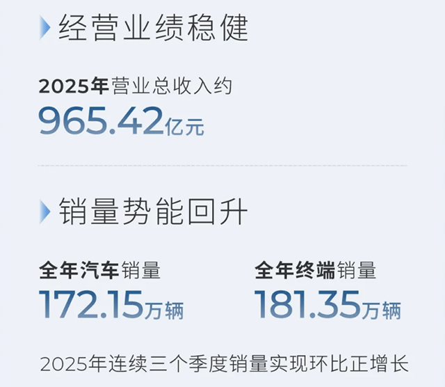2025年,廣汽集團交出一份穩健成績單:營收近965.42億元,終端銷量181.35萬輛,全年實現連續三季度環比正增長,銷量勢能持續向上,節能與新能源車型占比更是突破51.6%,正式邁入新能源驅動新階段。