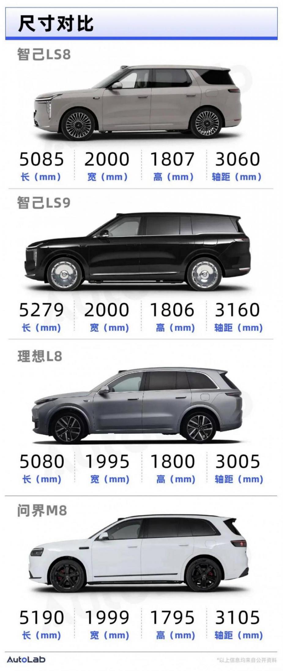 在尺寸上,智己LS8基本就是一臺小一號的LS9,軸距砍掉了100mm,近5.1米的車長和近3.1米的軸距,放在中大型SUV里依舊不算小。
