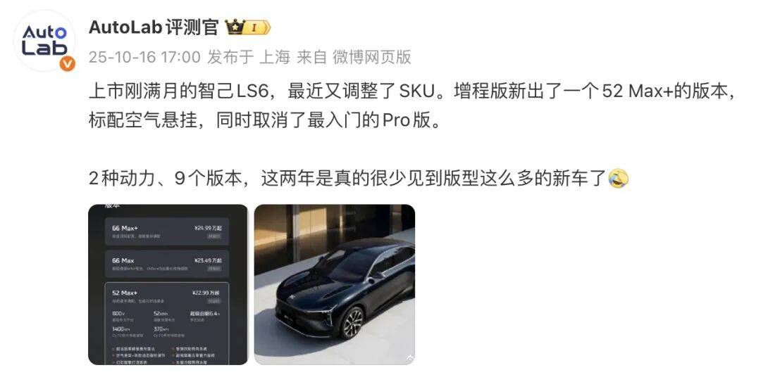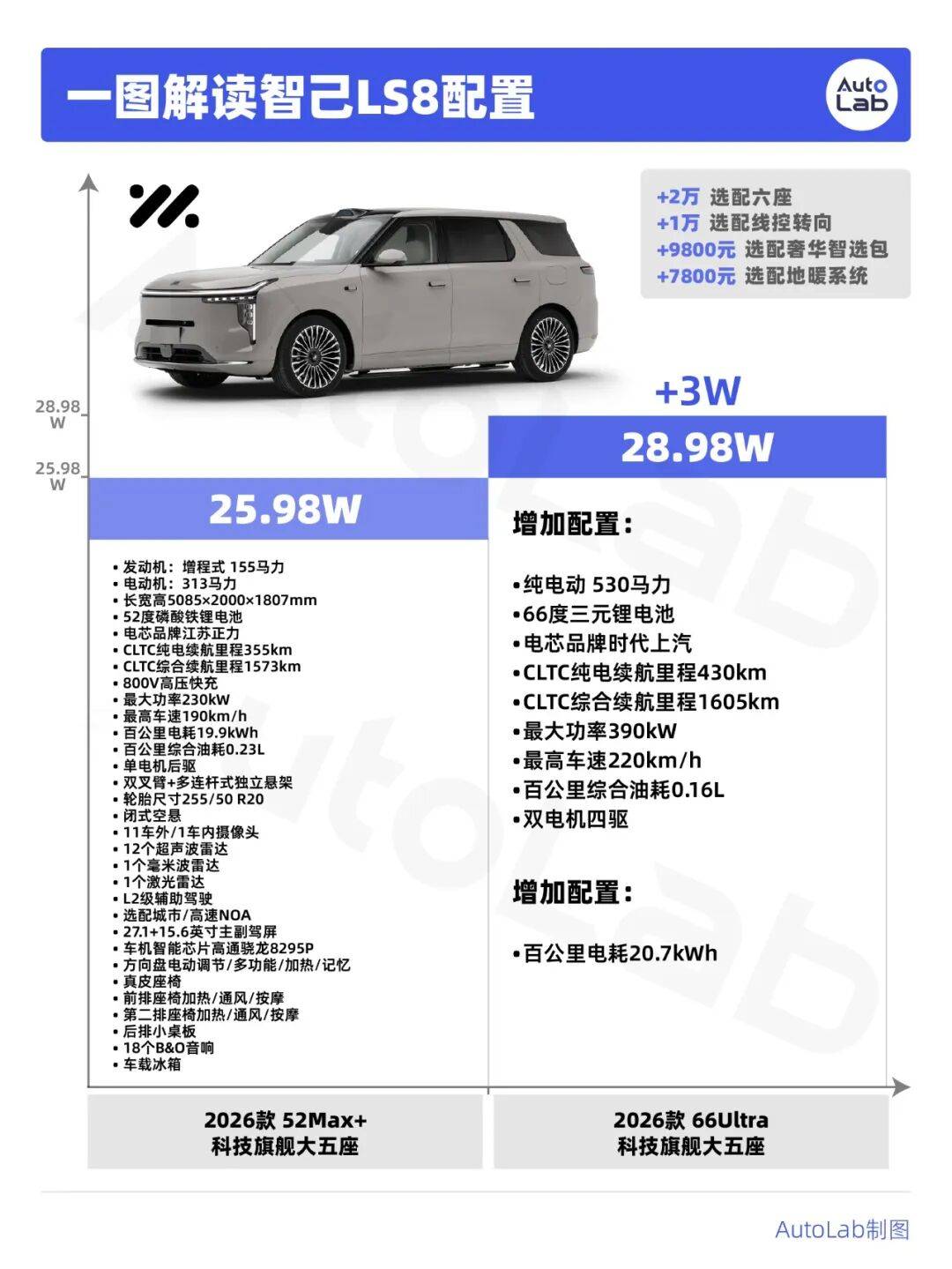 相比LS6當初兩種動力、9個版本的復雜SKU,這次LS8的配置劃分明顯“聽勸”了很多,整體邏輯也簡單得多。