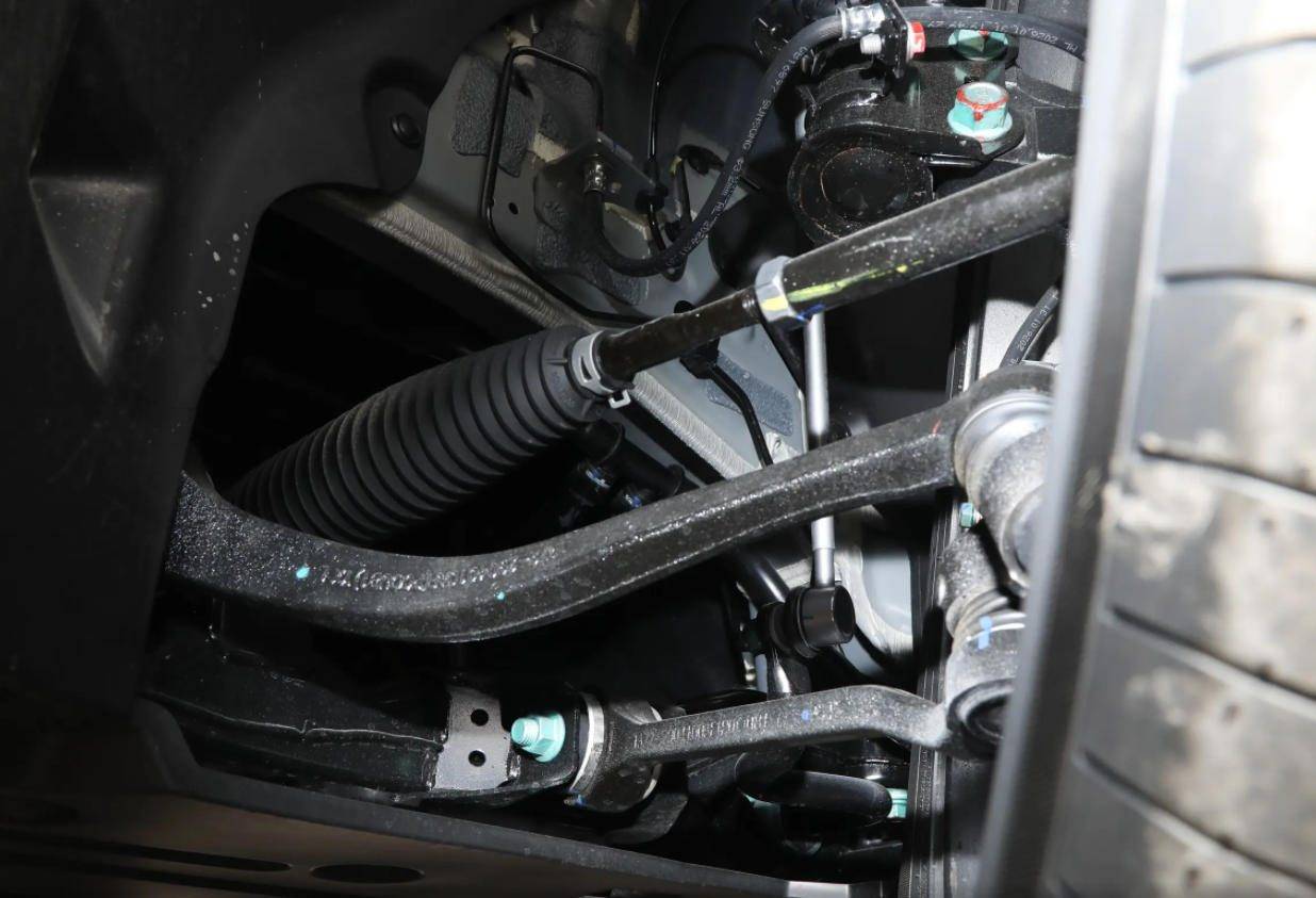 比亞迪采用CTB電池車身一體化技術,相比傳統車身+電池包的附加結構,整車扭轉剛度更高,沒有多余形變。懸掛結構為前雙球頭麥弗遜、后五連桿組合。雙球頭麥弗遜將傳統單下擺臂拆分為兩個獨立控制點,在轉向過程中更精準地控制車輪外傾角變化。輪胎在過彎時能保持更大的接地面積,提升抓地力。