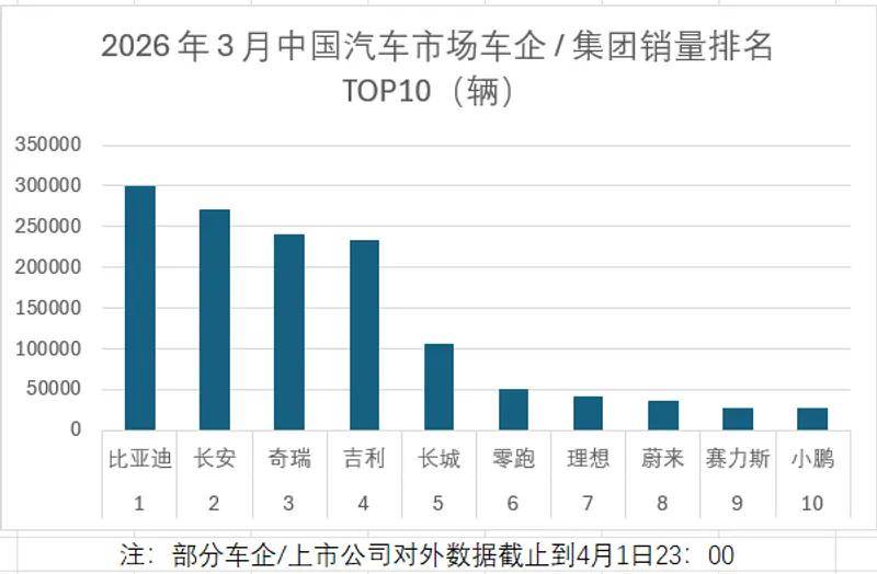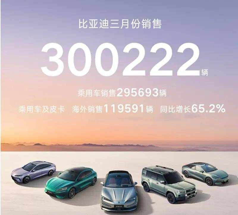 4 月 1 日,比亞迪公布 2026 年 3 月產(chǎn)銷數(shù)據(jù):單月銷量 300222 輛,強(qiáng)勢突破 30 萬輛大關(guān),一舉拿下中國車企銷量冠軍;同時(shí)連續(xù) 58 個(gè)月穩(wěn)坐中國新能源汽車銷量榜首,助力一季度完美收官。比亞迪一季度累計(jì)銷量達(dá)700463 輛,新能源累計(jì)銷量突破1580 萬輛,在行業(yè)競爭白熱化階段,再度展現(xiàn)技術(shù)引領(lǐng)與全球布局的雙重實(shí)力。