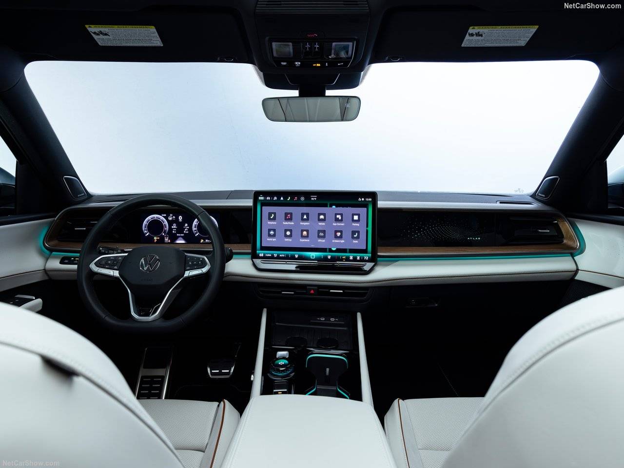 其它配置方面,全新Atlas標配前排12向電調座椅、電尾門、后排遮陽簾、自動防眩目后視鏡、前后泊車雷達和帶中央氣囊的7個安全氣囊,高配還有30色氛圍燈、14揚聲器哈曼卡頓音響、前排座椅按摩、二排座椅通風和Nappa真皮,第二排獨立座椅和全景天窗也可以選配。大眾給新車標配IQ.DRIVE,153km/h內自適應巡航時支持打燈變道,突發狀況時自行停靠路邊,也有最新版的自動泊車能力。
