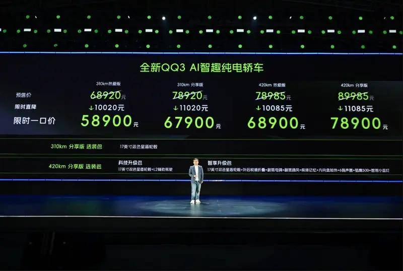 3月30日,全新QQ3上市發布會在成都露天音樂公園舉行,新車官方指導價為5.89萬-7.89萬元。作為奇瑞汽車基于“QQ”IP打造的首款全新產品,也是QQ品牌煥新的開局之作,從去年成都車展首次亮相,到如今正式上市,全新QQ3持續占據熱搜,在網絡上引發熱議,并在盲訂和預售階段分別收獲超6.1萬、超4.3萬份訂單。