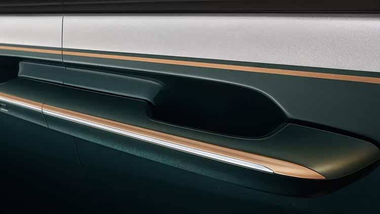 在燈光與格柵部分,新車采用飛檐展翼貫穿式前后燈組,拉伸車輛橫向視覺寬度,搭配鱗紋格柵與多材質拼接工藝,強化旗艦車型的氣場。同時,車輛配備淬金華彩紋飾、專屬金標與金色飾條,織金華蓋輪轂采用高級科技灰噴涂工藝,細節處提升整車豪華感。